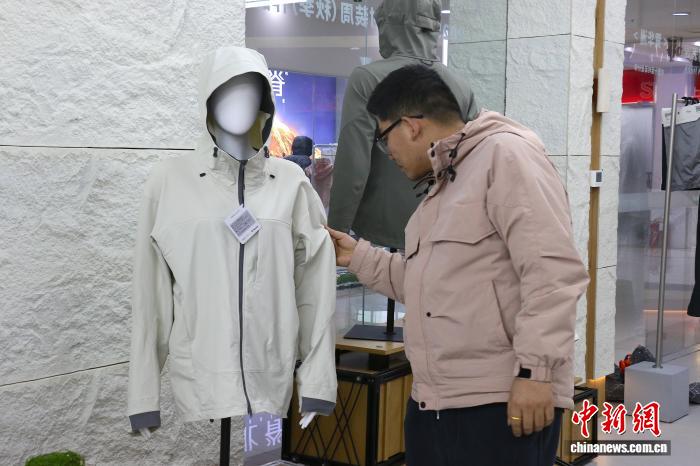 12月24日,推销商(左)细致检查冲击衣内乱胆里料。中新社记者 项菁 摄